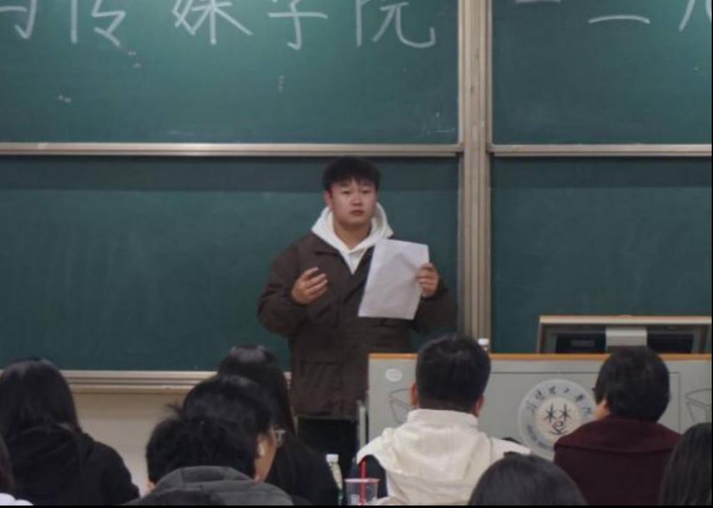 为纪念“一二·九”学生爱国运动88周年,11月18日晚,我院在教学楼A1-305举行了“一二·九”爱国诗歌朗诵比赛。本次比赛以“薪火永相传,青春正激昂”为主题,旨在通过朗诵经典爱国诗歌,弘扬爱国主义精神,引导学生铭记历史,缅怀先烈,传承红色文化。