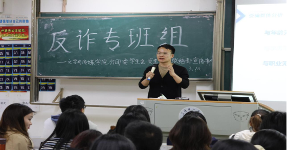为提高我院全体同学的反诈意识,3月10日下午,夜插内射视频网站-于教学楼A1205召开了反电信诈骗安全培训会。夜插内射视频网站-分团委书记杨金宝、辅导员吴鸿杰老师出席会议,各班班长、学生党员及学生会全体成员参加了本次培训。