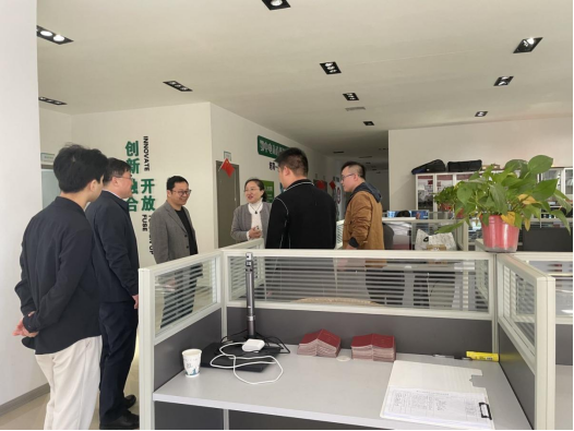 吴浪平一行参观了湖北益彩供应链管理有限公司综合办公区、培训中心、选品中心、共享直播间及部分入驻电商企业,听取公司情况介绍,与公司副总经理鄢道仁、办公室主任谭蕾座谈,就企业来校招聘、毕业生实习就业、校企合作等事项深入交流并达成初步意向。