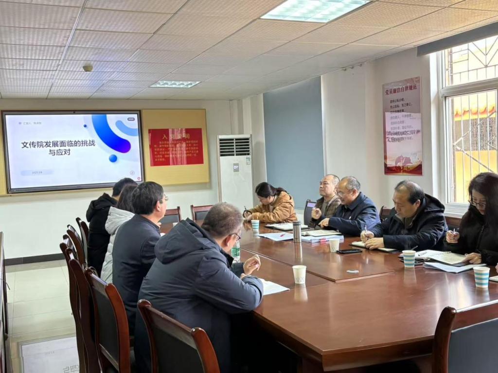 调研会在博园1栋204会议室展开。会上,首先院长陈洪友代表班子汇报工作,重点剖析文传院2024年高质量发展考核得失和2025年工作思路,主要汇报了有组织的科研、抓“三考”录取率、就业创业工作常态化、加速专业建设、深化产教融合、推进省级平台建设这六大重点工作。