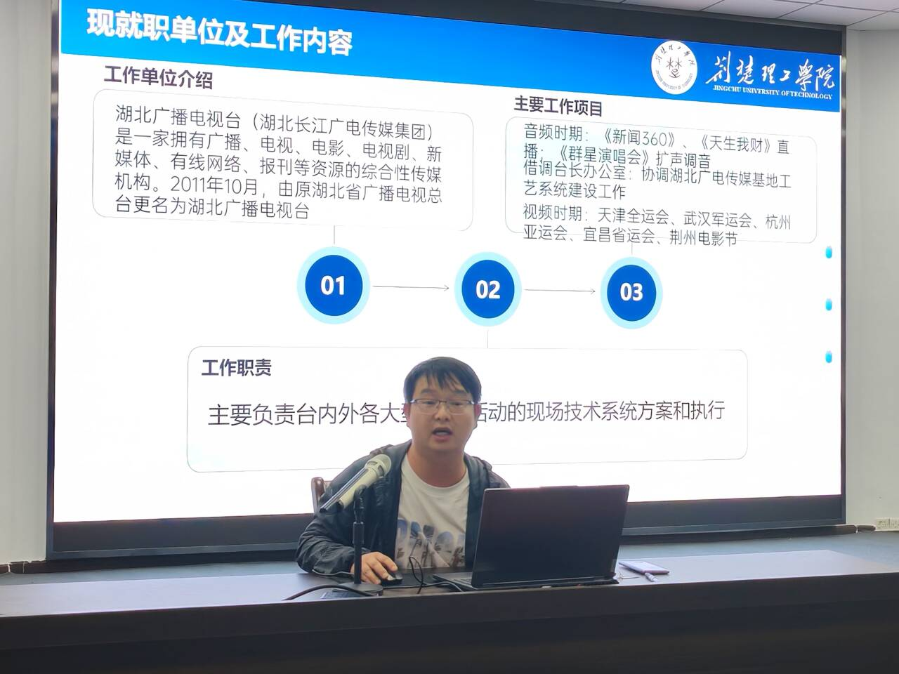 黄文伟以《与梦想同行:在校园实现职业梦想》为题,讲述如何在大学阶段为职业发展做好充分准备。他详细介绍了自己在校期间通过参与校园媒体、参加专业竞赛、进行实习实践等方式,逐步明确职业方向、提升专业技能的经历。他鼓励同学们树立清晰的职业目标,制定合理的学习计划,充分利用学校资源,积极参与实践活动,在实践中发现问题、解决问题,不断提升自己的综合竞争力。