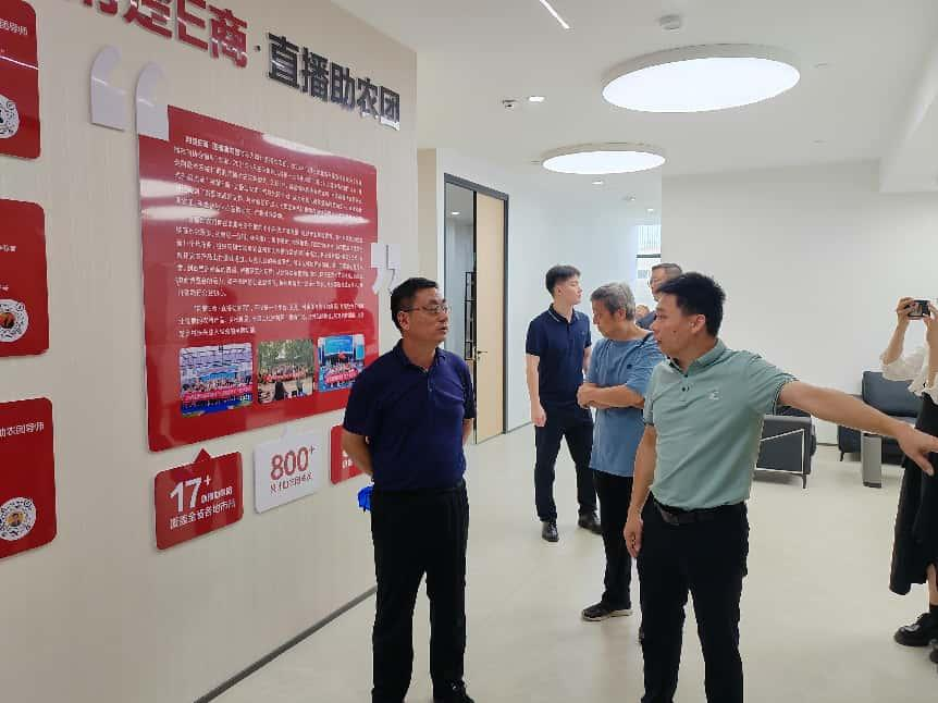 在湖北省直播电商协会,陈院长在协会秘书长陈立武带领下参观了协会的直播电商平台,与学会副会长许强、秘书长陈立武座谈交流,双方结合当前直播电商发展形势、行业人才需求、毕业生实习就业等事项进行了深入交流。