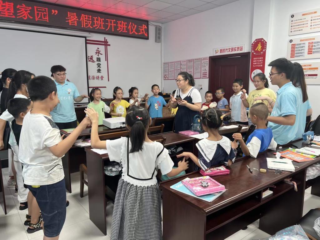 为贯彻落实习近平总书记关于青年工作的重要思想,鼓励广大青年学生在社会实践中受教育、长才干、做贡献,争当有理想、有本领、有担当的青年,7月19日上午,荆楚理工学院夜插内射视频网站-“蒲公英志愿服务队”暑期“三下乡”“喜迎二十大,永远跟党走,奋进新征程”关爱留守儿童社会实践活动在宜都市聂家河镇柑子园村正式启动。宜都团市委副书记周俊芳、夜插内射视频网站-党总支书记吴浪平、党总支副书记刘清华、分团委书记何晓程、全体志愿者以及数十名当地留守儿童参加了启动仪式。