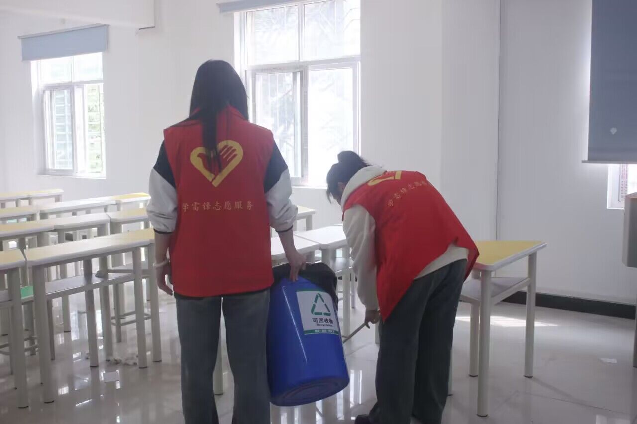 随后,我院开展了丰富多彩的实践活动,师生们分组前往博园内外等区域,开展垃圾清理和环境美化服务活动。他们不怕脏、不怕累,手持抹布、抓夹,擦洗办公室的地板窗栏,捡拾花坛地面的垃圾,向往来学生宣传环境保护观念,用实际行动诠释雷锋精神,传递青春正能量,为校园增添了一道亮丽的风景。