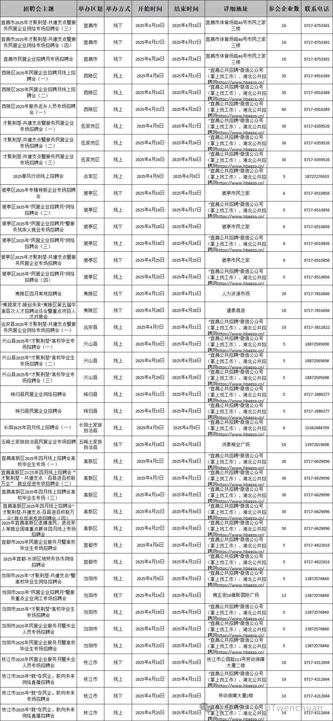 01 宜昌市4月招聘会信息汇总