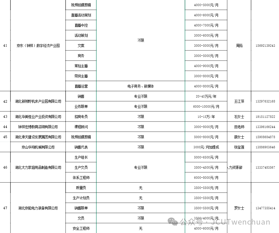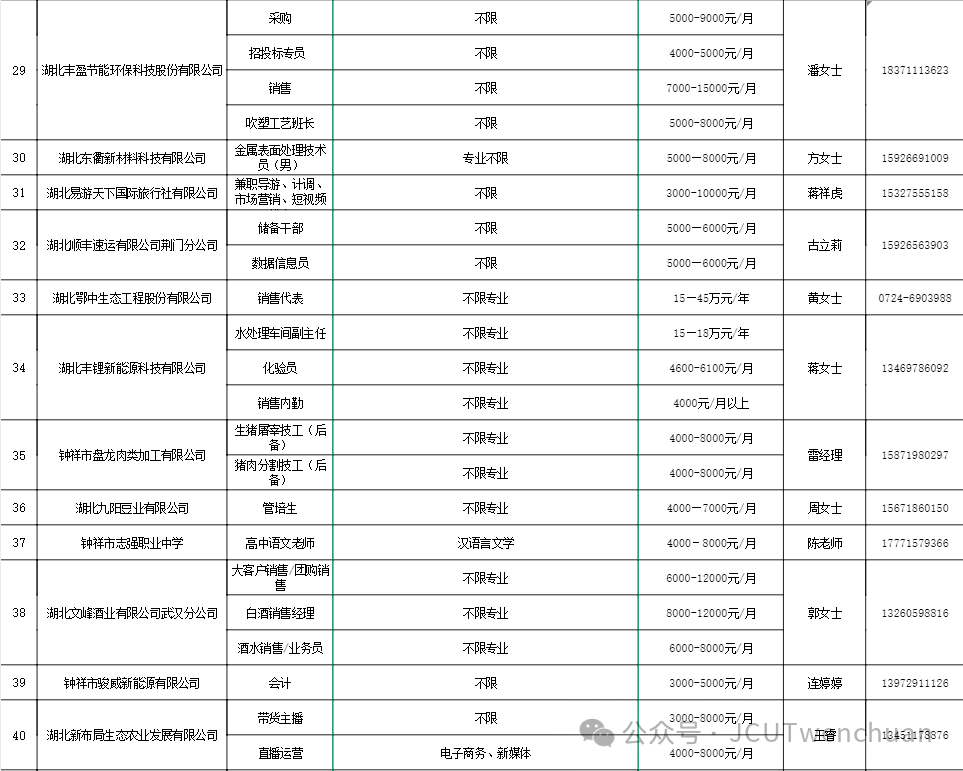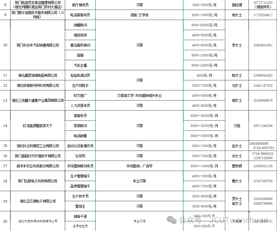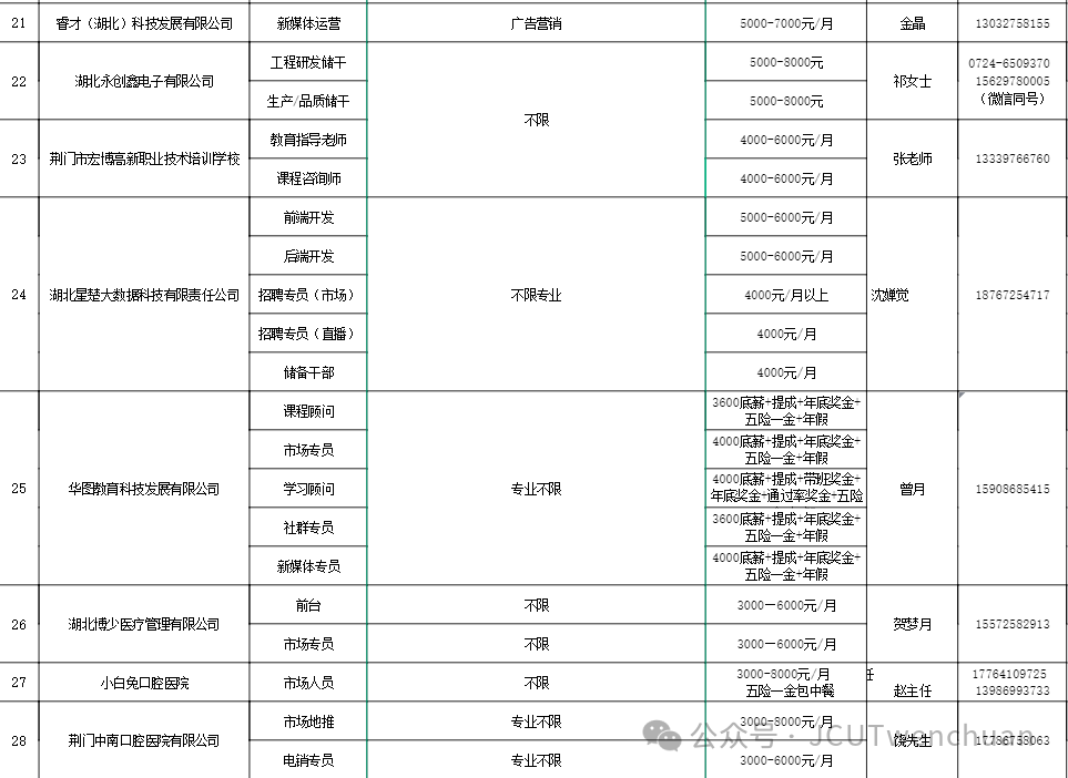 01 2025年“才聚荆楚 ·共建支点 ·百县进百校联万企”荆楚理工学院校园招聘会人才需求信息表