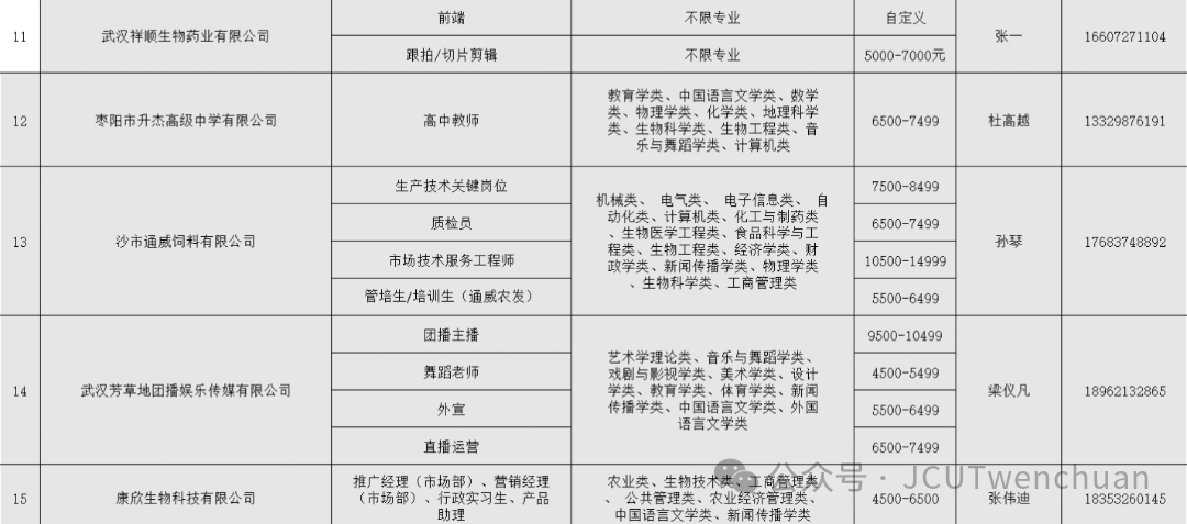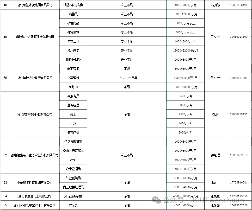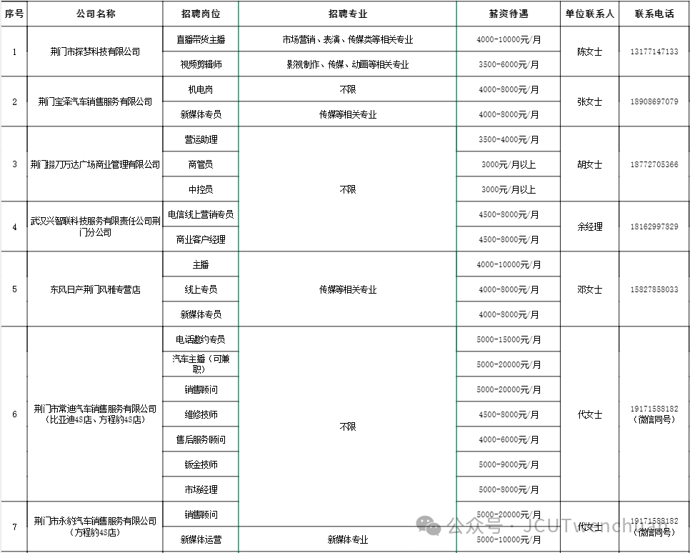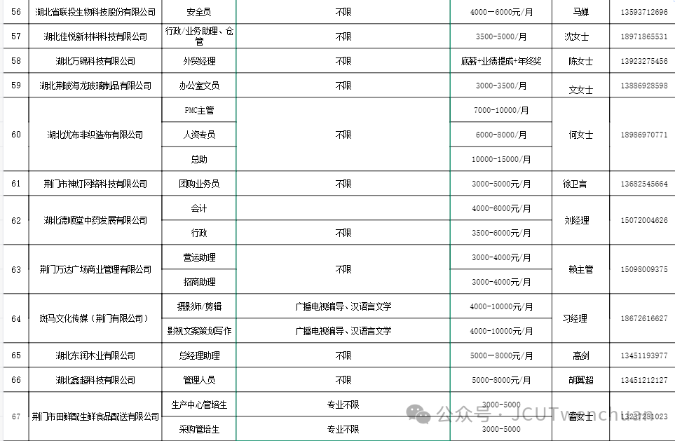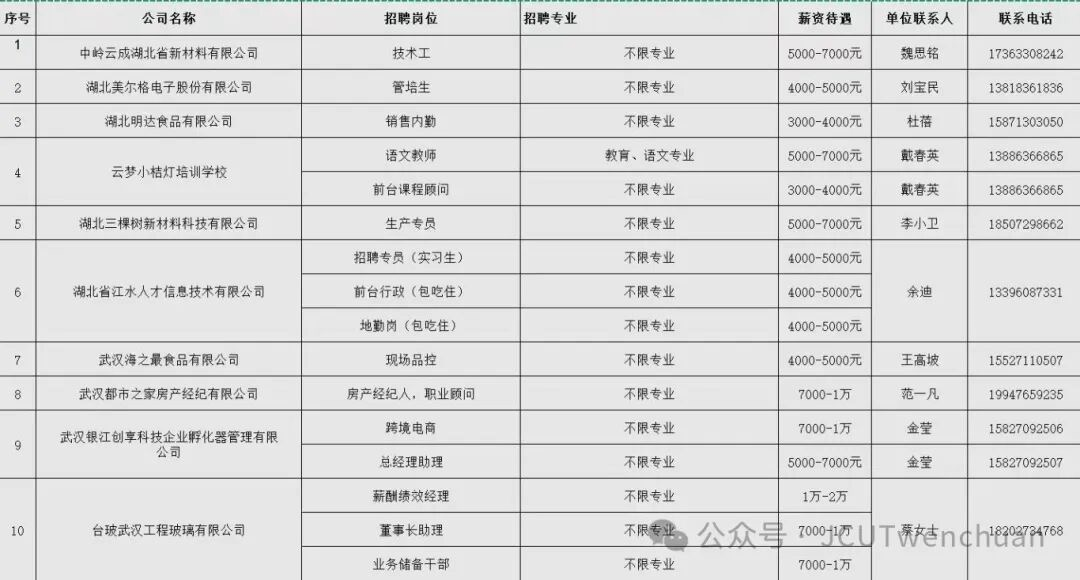 01 2025年“才聚荆楚 ·共建支点 ·百县进百校联万企”荆楚理工学院校园招聘会人才需求信息表