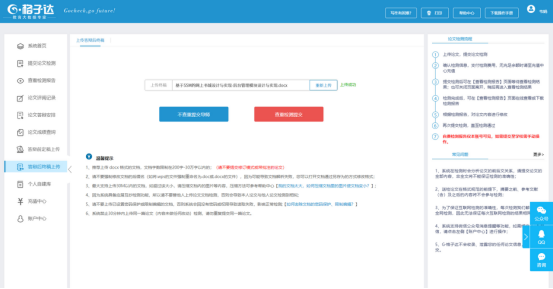 2.支持上传doc、docx、wps格式文档;学校要求对论文进行格式检测,建议提交文档格式为docx。